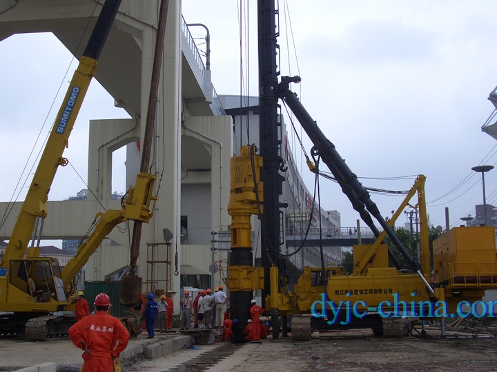 上海地鐵M8線虹口足球場車站地下圍護咬合樁,該項目是上海重點工程之一。該車站地下圍護給上海專家們出了個難題,由于車站地下圍護要在輕軌明珠線高架橋墩往下開挖 16m 深度的基坑圍護,圍護變形要求很高,且輕軌明珠線在橋上運行,橋墩緊靠此處。通過專家們多次研究和論證,決定采用進口 360度全回轉套管機來進行咬合樁施工。該圍護咬合樁施工開挖后順作區(qū)外移 30mm,逆作區(qū)外移10mm,質量高,整體完美,達到設計要求,得到專家好評,并為咬合樁在上海地區(qū)高難度圍護基坑施工中立了科題。